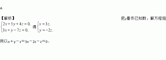 若2x+5y+4z=0,3x+y-7z=0,则x+y-z的值等于( )