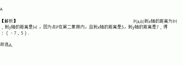 若点P在第二象限内,且到x轴的距离是5,到y轴的距离是7,则点P的坐标是( )