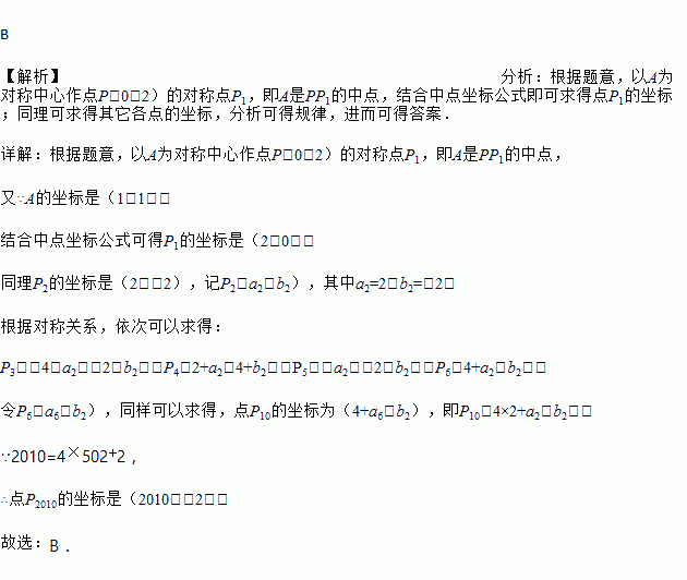 如图,在平面直角坐标系xOy中,等腰梯形ABCD的顶点坐标分别为A(1,1),B(2,﹣1),C(﹣2,﹣1),D(﹣1,1).以A为对称中心作点P(0,2)的对称点P1,以B为对称中心作点P1的对称点P2,以C为对称中心作点P2的对称点P3,以D为对称中心作点P3的对称点P4,…,重复操作依次得到点P1,P2,…,则点P2010的坐标是(  )