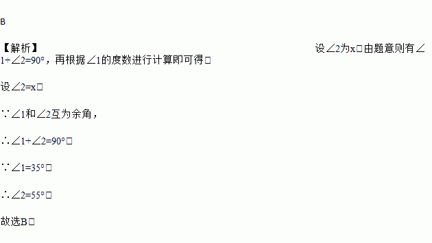 ∠1与∠2互为余角,当∠1为35°时,∠2的度数是( )