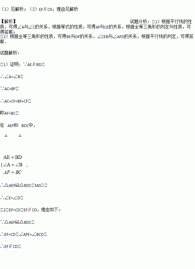 如图:已知AE∥BD ,AE=BD, A、C、F、B在同一直线上且AC=BF.