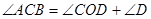 如图,BC⊥ED,垂足为O,∠A=27°,∠D=20°,求∠ACB与∠B的度数.![]()
