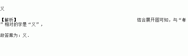 “仁义礼智信孝”是我们中华民族的传统美德,小明同学将这六个字分别写在正方体的六个表面上,这个正方体的表面展开图如图所示,那么与“孝”所在面相对的面上的字是________.