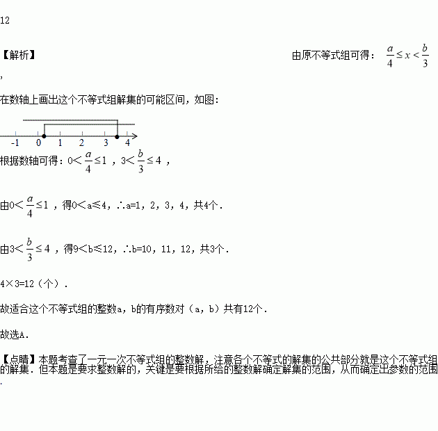 如果不等式组的整数解仅为1,2,3,那么适合这个不等式组的整数a、b的有序数对(a,b)共有______个.
