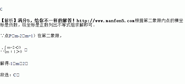 在平面直角坐标系中,若点P(m﹣2,m+1)在第二象限,则m的取值范围是( )