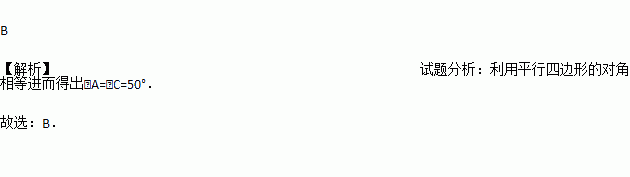 如图,在平行四边形ABCD中,如果∠A=50°,则∠C=( )