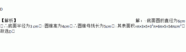 ¡°¸ÏÍÓÂÝ¡±ÊÇÒ»ÏîÉîÊÜÈËÃÇϲ°®µÄÔ˶¯£¬ÈçͼËùʾÊÇÒ»¸öÍÓÂݵÄÁ¢Ìå½á¹¹Í¼£¬ÒÑÖªµ×ÃæÔ²µÄÖ±¾¶AB=6cm£¬Ô²ÖùÌ岿·ÖµÄ¸ßBC=5cm,Ô²×¶Ì岿·ÖµÄ¸ßCD=4cm,ÔòÕâ¸öÍÓÂݵıíÃæ»ýÊÇ£¨ £©