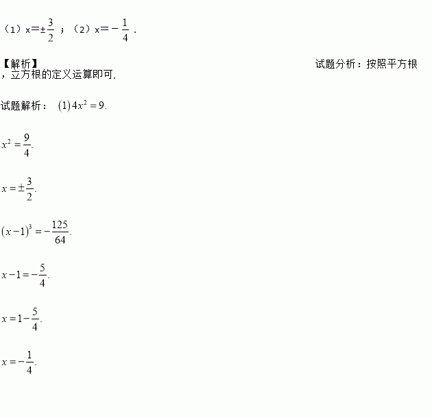 (1)4x2-9=0;(2)8(x-1)3=-.