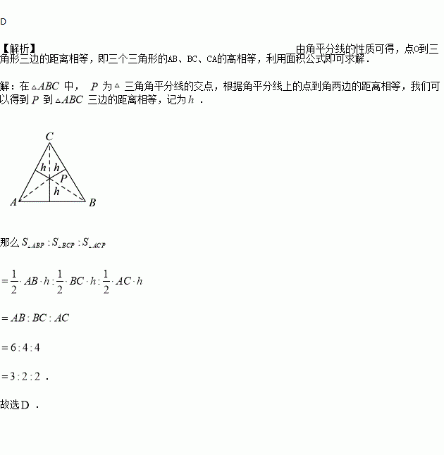 若的三边, , 的长分别为, , ,点为三条角平分线的交点,则, , 的面积比等于().