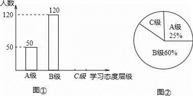 学生的学业负担过重会严重影响学生对待学习的态度.为此我市教育部门对部分学校的八年级学生对待学习的态度进行了一次抽样调查(把学习态度分为三个层级,A级:对学习很感兴趣;B级:对学习较感兴趣;C级:对学习不感兴趣),并将调查结果绘制成图①和图②的统计图(不完整).请根据图中提供的信息,解答下列问题:
