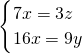 由于x,y,z都是正整数,则x的最小值为9,从而y和z的最小值依次为16,21,此时长方形的邻边长分别为: