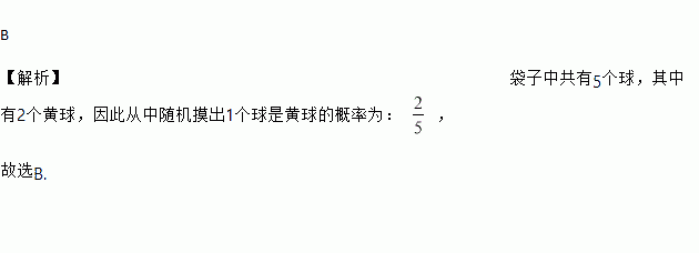 一个不透明的袋子中有3个红球和2个黄球,这些球除颜色外完全相同.从袋子中随机摸出1个球,这个球是黄球的概率为