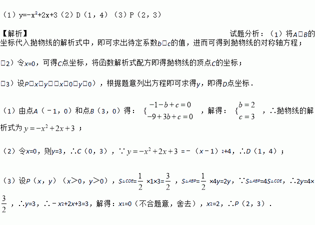 (3)若点P在第一象限内的抛物线上,且S△ABP=4S△COE , 求P点坐标.