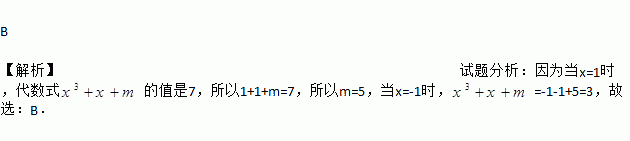 当x=1时,代数式x3+x+m的值是7,则当x=﹣1时,这个代数式的值是( )