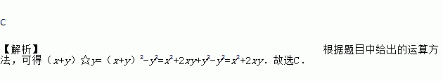 C 【解析】根据题目中给出的运算方法,可得(x+y)☆y=(x+y)2-y2=x2+2xy+y2-y2=x2+2xy.故选C.