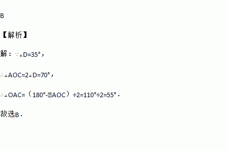 如图,A、D是⊙O上的两个点,BC是直径,若∠D=35°,则∠OAC的度数是( )
