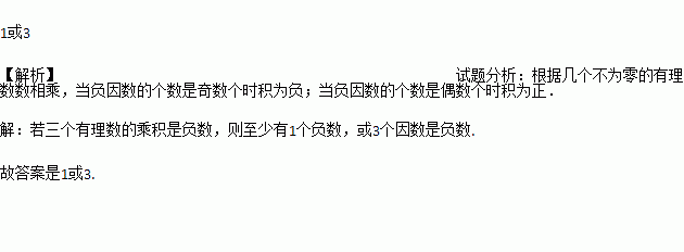 若三个有理数的乘积为负数,则在这三个有理数中,有_________________个负数.