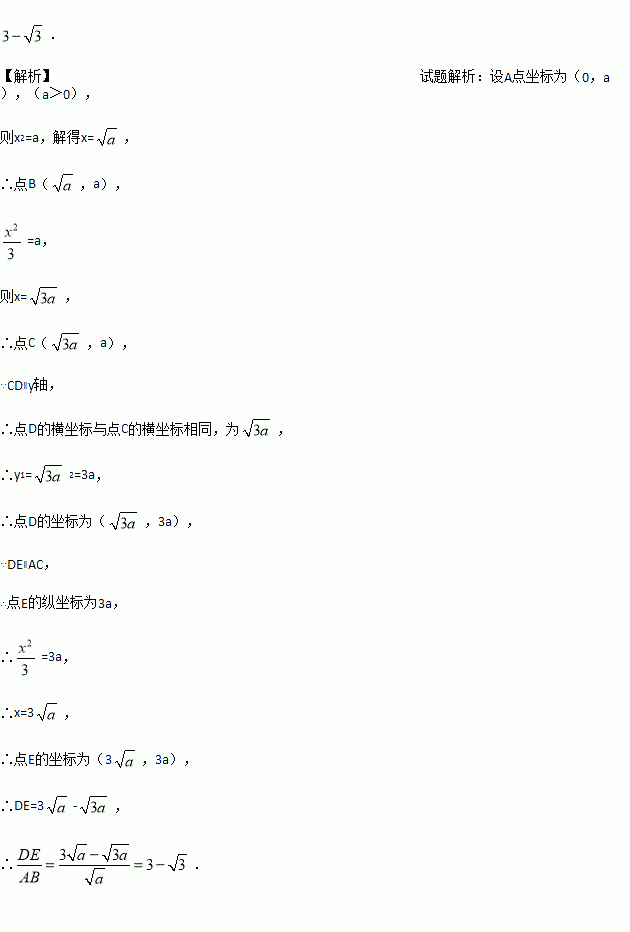 如图,平行于x轴的直线AC分别交函数y1=x2(x≥0)与y2=(x≥0)的图象于B、C两点,过点C作y轴的平行线交y1的图象于点D,直线DE∥AC,交y2的图象于点E,则= .