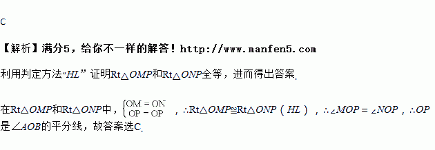 用三角尺可以按照下面的方法画∠AOB的角平分线:在OA、OB上分别取点M、N,使OM=ON;再分别过点M、N画OA、OB的垂线,这两条垂线相交于点P,画射线OP(如图),则射线OP平分∠AOB,以上画角平分线时,用到的三角形全等的判定方法是( )
