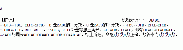 如图,△ABC中,∠ABC与∠ACB的平分线交于点F,过点F作DE∥BC交AB于点D,交AC于点E,那么下列结论: