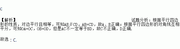 如图,在?ABCD中,O是对角线AC,BD的交点,下列结论错误的是( )