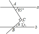 分析:延长AC与直线b相交,根据两直线平行,内错角相等可得∠1=65°,再根据直角三角形两锐角互余求解即可.