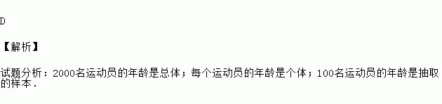 为了解参加运动会的2000名运动员的年龄情况,从中抽查了100名运动员的年龄.就这个问题来说,下面说法中正确的是( )