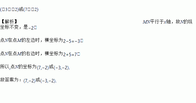 已知线段MN平行于x轴,且MN的长度为5,若点M(2,-2),则点N的坐标为______.
