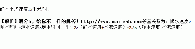 一艘船从甲码头到乙码头顺流行驶,用了2小时;从乙码头返回甲码头逆流行驶,用了3小时.已知水流的速度是3千米/时,求船在静水中的平均速度.