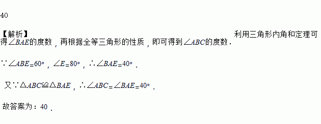 如图,△ABC≌△BAE,∠ABE=60°,∠E=80°,则∠ABC=_____°.