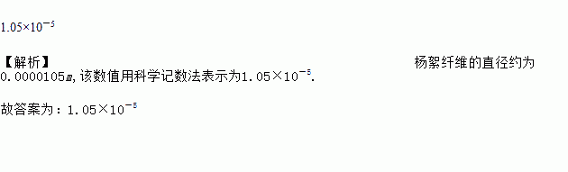 每到四月,许多地方杨絮、柳絮如雪花般漫天飞舞,人们不堪其扰,据测定,杨絮纤维的直径约为0.0000105 m,将0.0000105用科学记数法表示为_________.