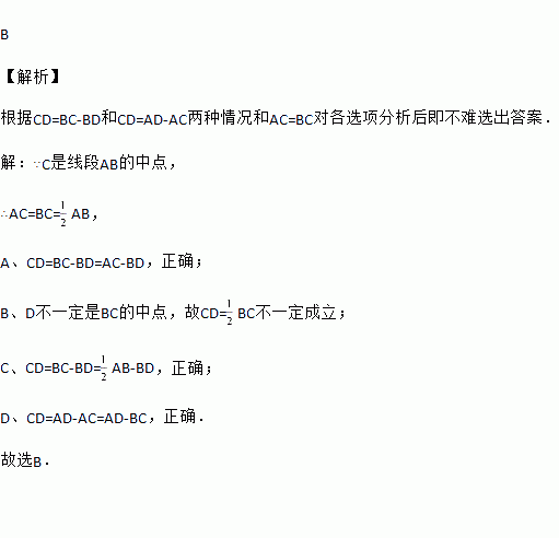 如图,C是线段AB的中点,D是CB上一点,下列说法中错误的是( )
