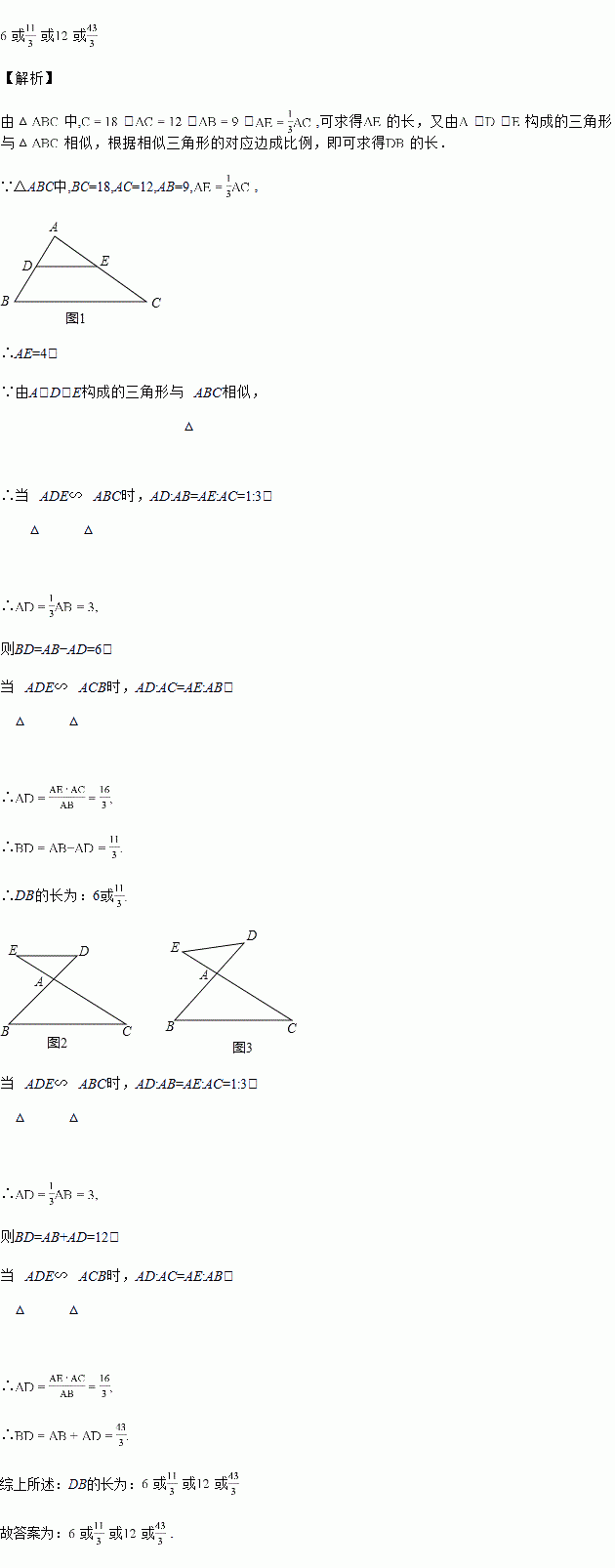 中,,,,,是直线,上的点.若由,,构成的三角形与相似,,则的长为________.
