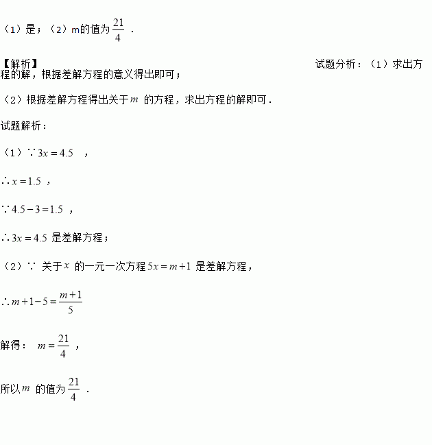 (2)若关于x的一元一次方程5x=m+1是差解方程,求m的值.