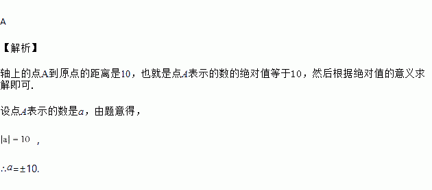 数轴上的点A到原点的距离是10,则点A表示的数为( )