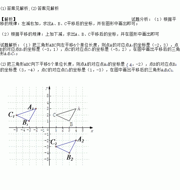 (2)把三角形ABC向下平移5个单位长度,则点A的对应点A2的坐标是(___) ,-2 ),点B的对应点B2的坐标是( , ),点C的对应点C2的坐标是( , ),在图中画出平移后的三角形A2B2C2.