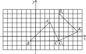 如图,方格纸中的每个小方格都是边长为1的正方形,我们把以格点间连续为边的三角形称为“格点三角形”,图中的△ABC是格点三角形,在建立平面直角坐标系后,点B的坐标为(-1,-1)把△ABC绕点C按顺时针方向旋转90°后得到△A1B1C,画出△A1B1C的图形,并写出点B1的坐标.