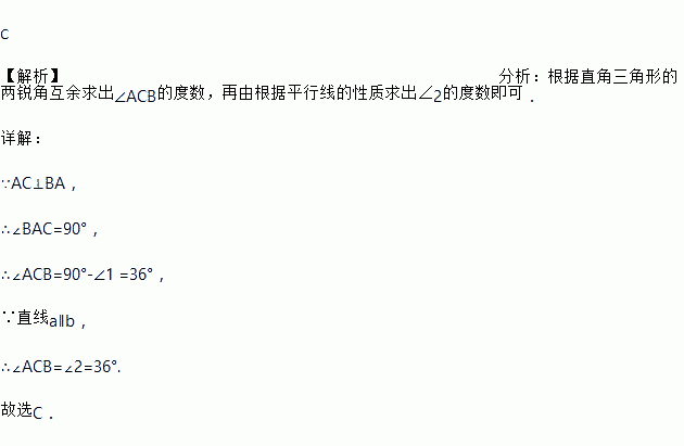 如图,直线a∥b,直线l与a,b分别相交于点A、B,过点A作直线l的垂线交直线b于点C,若,则的度数为( )