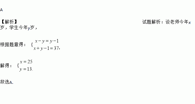 学生问老师:“老师,您今年多大了?”老师风趣地说:“我像你那么大时,你才1岁;你到我这么大时,我已经37岁了.”则老师今年( )