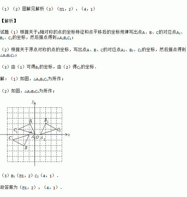 (2)作△ABC关于坐标原点成中心对称的△A2B2C2.