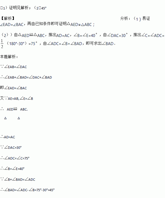 (2)若∠E=40°,∠DAC=30°,求∠BAD的度数.