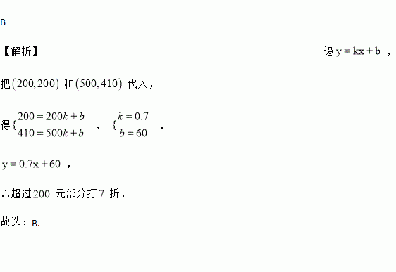B 【解析】设, 把和代入, 得, . , ∴超过元部分打折. 故选:B.