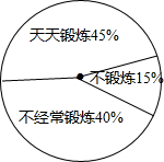 所以天天锻炼的男生占45%,不经常锻炼的男生占40%,不锻炼的男生占15%.