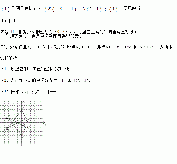 (3)作出△ABC关于x轴的对称图形△A′B′C′.(不用写作法)