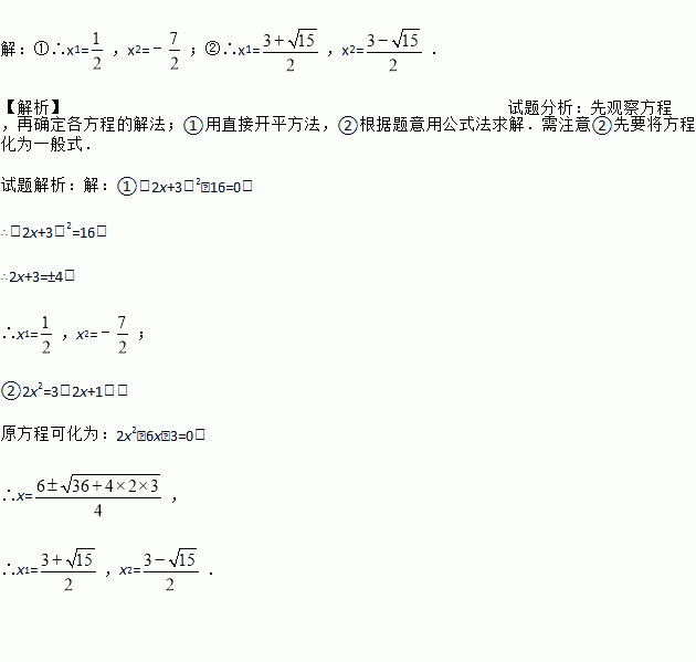 【解析】 ①∴x1=,x2=﹣;②∴x1=,x2=. 【解析】试题分析:先观察方程,再确定各方程的解法;①用直接开平方法,②根据题意用公式法求解.需注意②先要将方程化为一般式. 试题解析:【解析】 ①(2x+3)2﹣16=0, ∴(2x+3)2=16, ∴2x+3=±4, ∴x1=,x2=﹣; ②2x2=3(2x+1), 原方程可化为:2x2﹣6x﹣3...如图,在平面直角坐标系中,点A在抛物线y=x2﹣2x+4上运动.过点A作AC⊥x轴于点C,以AC为对角线作矩形ABCD,连结BD,则对角线BD的最小值为____.