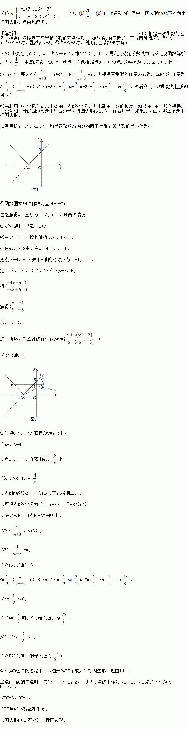 与新函数的图象交于点C(1,a),点D是线段AC上一动点(不包括端点),过点D作x轴的平行线,与新函数图象交于另一点E,与双曲线交于点P.