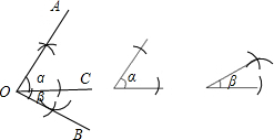 分析:根据作一个角等于已知角的作法,先作出∠α,然后以∠α的一条边为公共边,在∠α的外部在作出∠β,两角之和就是∠AOB.