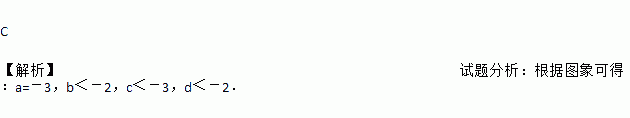 C 【解析】试题分析:根据图象可得:a=-3,b<-2,c<-3,d<-2.