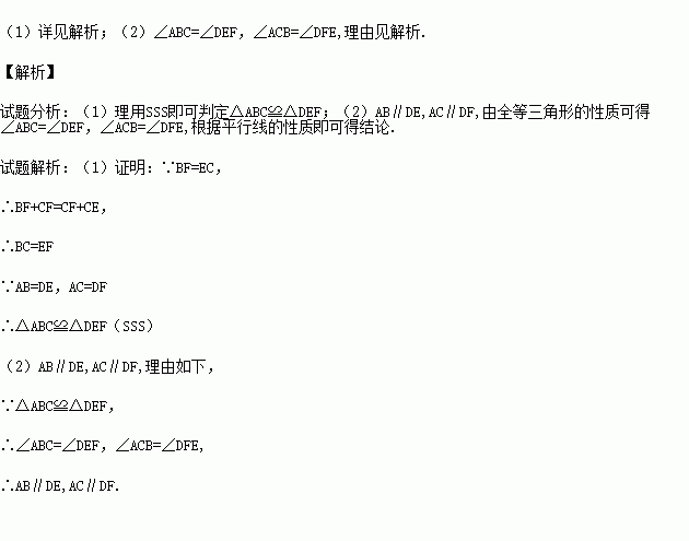 (1)求证:△ABC≌△DEF;
