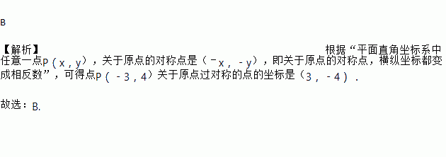 在平面直角坐标系中,点P(﹣3,4)关于原点对称的点的坐标是( )